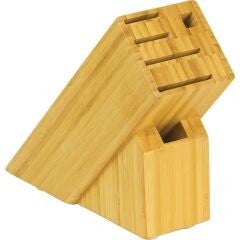 Bamboo construction. Accommodates up to 4 pieces of Kai kitchen cutlery, two large slots and two medium slots. Also has a slot for honing steel and shears. Boxed. Block only